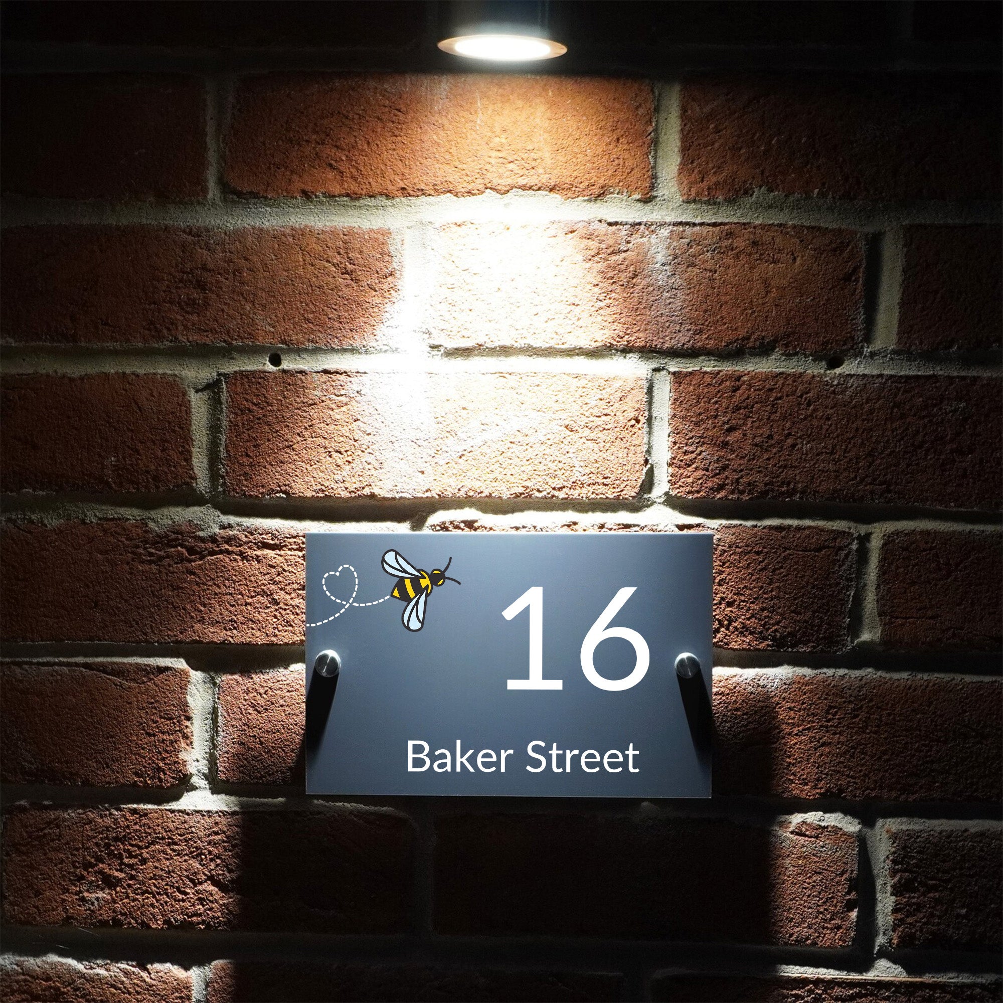 Custom Signs Modern Anthracite House Door Number Plaque – Flying Honey Bee Design