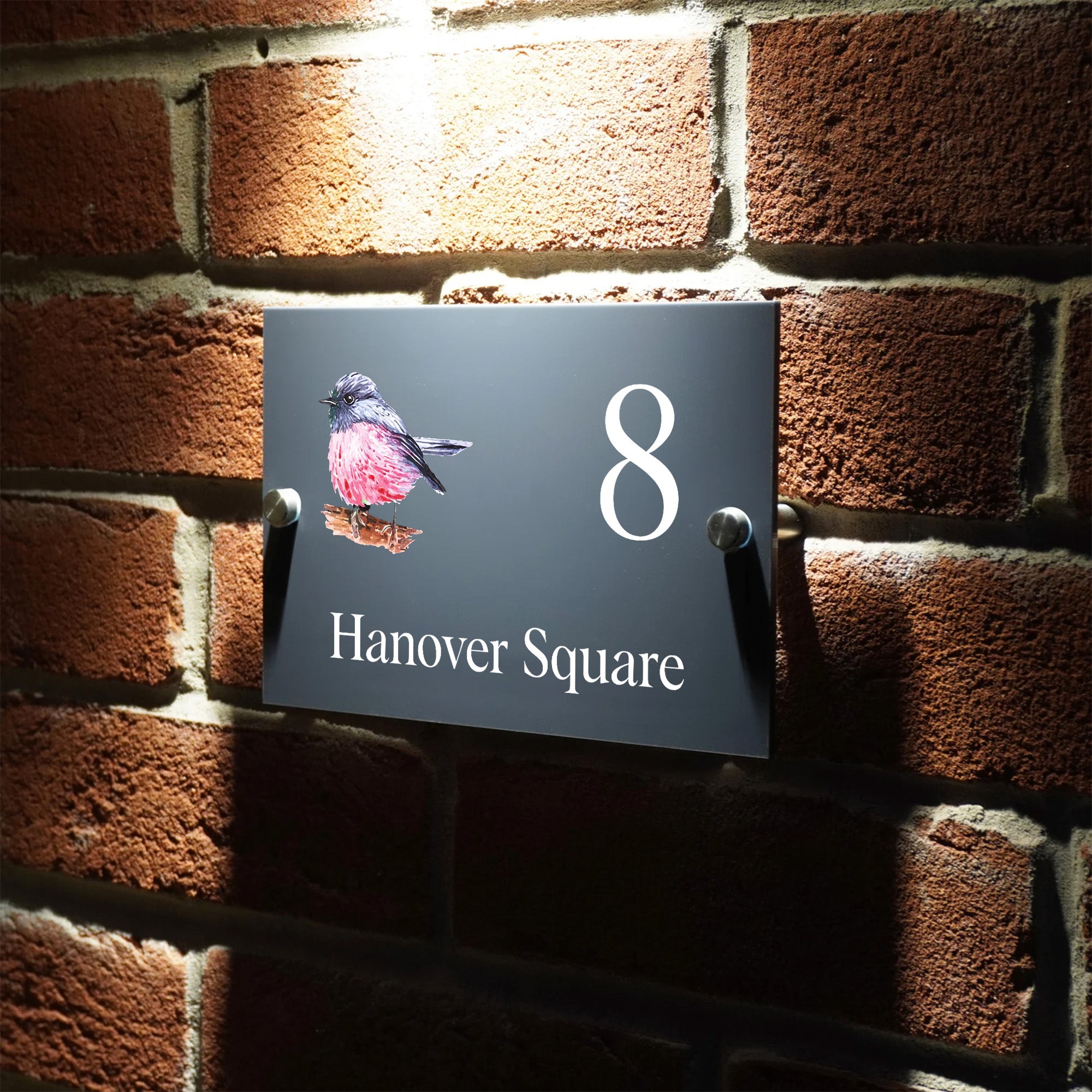 Custom Signs Modern Anthracite House Door Number Plaque Robin Red Breast Bird Design